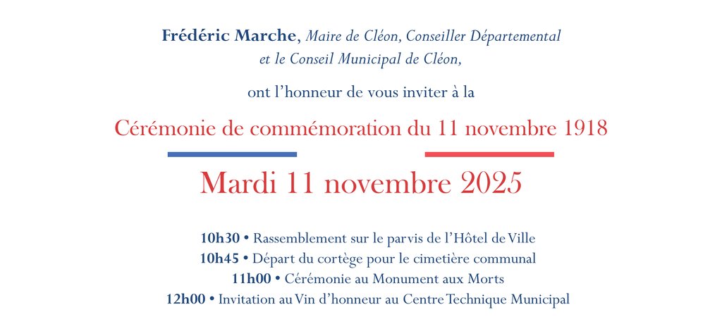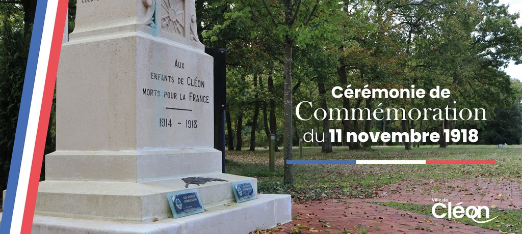 🕊️ À l’occasion du 107e anniversaire de la signature de l’Armistice, une cérémonie se tiendra le mardi 11 novembre à partir de 11h devant le monument aux morts dans le cimetière communal, en présence notamment des élèves des écoles et du collège de Cléon ainsi que le conseil municipal des jeunes.
