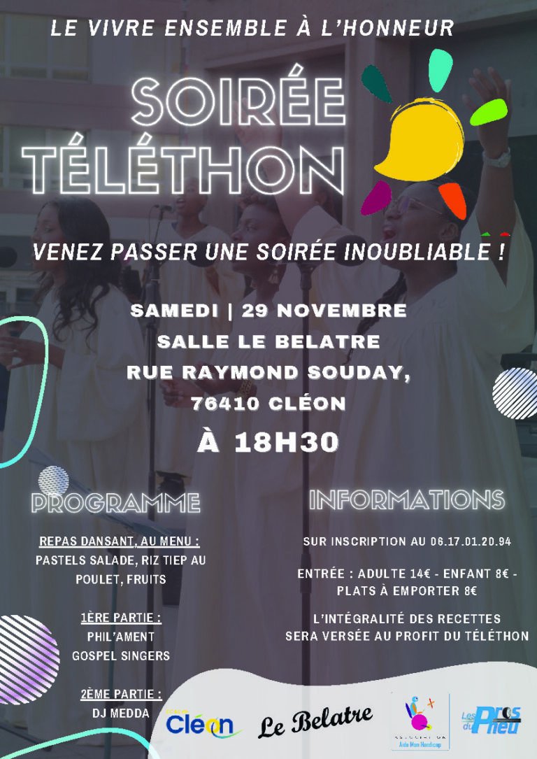 đ„ Samedi soir, prenez la direction de la Salle du BelĂątre (Rue Raymond Souday Ă ClĂ©on), Ă partir de 18h30, pour une soirĂ©e sur le thĂšme du vivre ensemble. Au programme : thieb au poulet, artiste, gospel et DJ. Tarifs : sur place : adulte 14⏠ou enfant 8⏠; Ă Â emporter : 8âŹ. RĂ©servations au 06 17 01 20 94