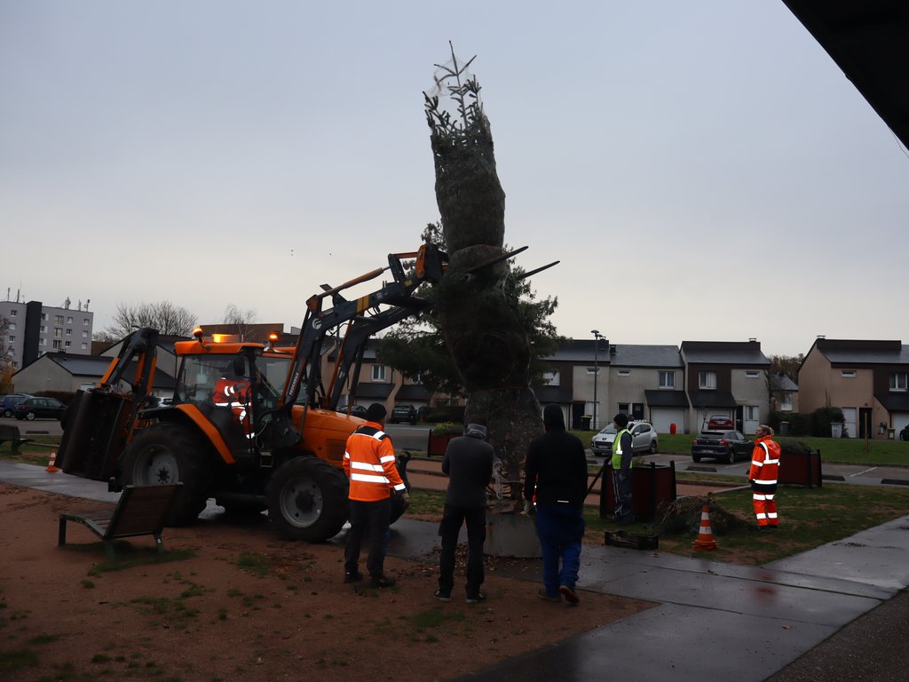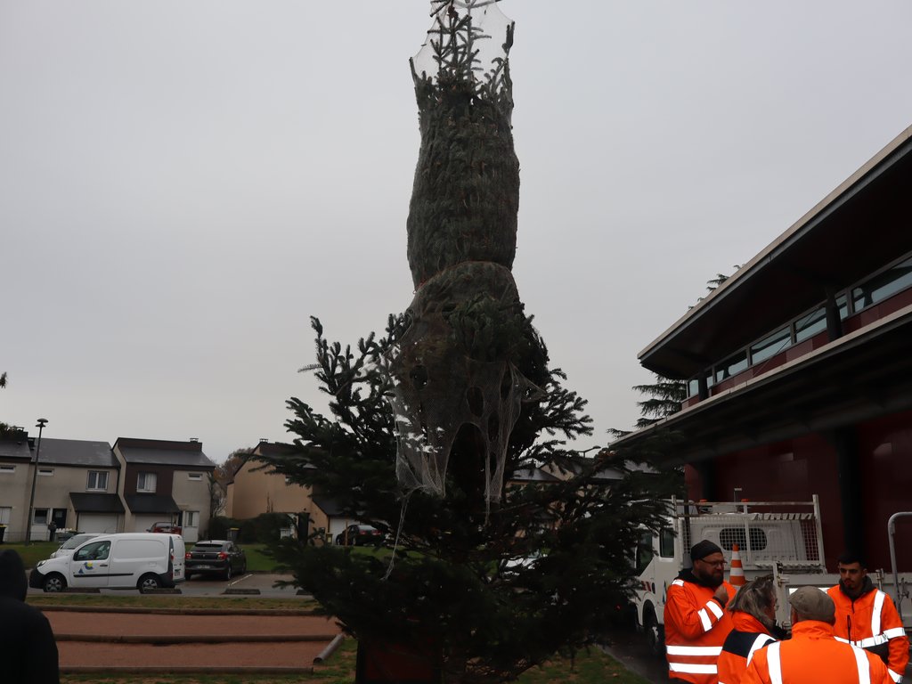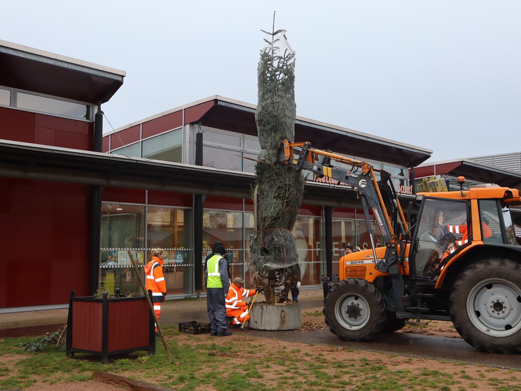 🎅 Véritable symbole de cette période festive, le grand sapin d’une hauteur de 7 mètres a été installé ce matin par les équipes de la ville.