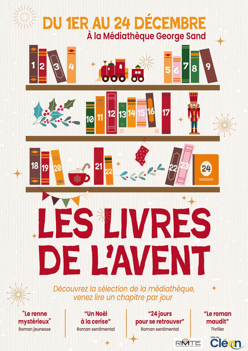 🎄 Jusqu’au 24 décembre, la médiathèque George Sand vous invite à découvrir de nouvelles lectures avec les Livre de l’Avent.