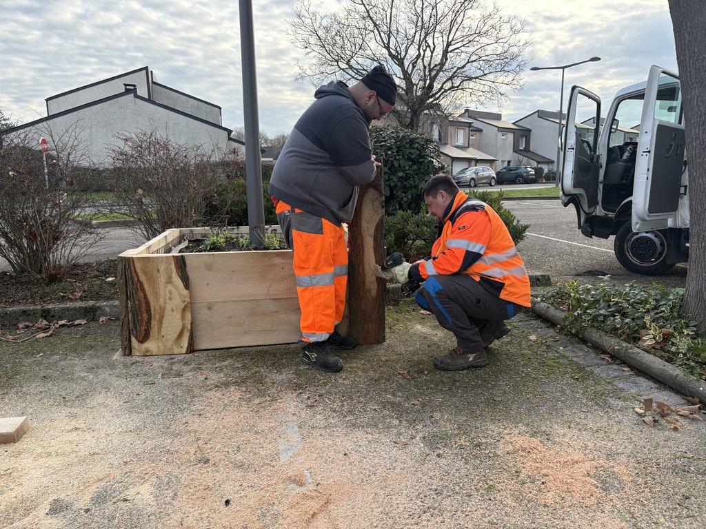 đȘ” Les agents de la ville ont optĂ© pour une solution durable avec un matĂ©riel naturel : le bois. En effet, les planches utilisĂ©es proviennent des grumes dĂ©bitĂ©es sur le sentier des abeilles.