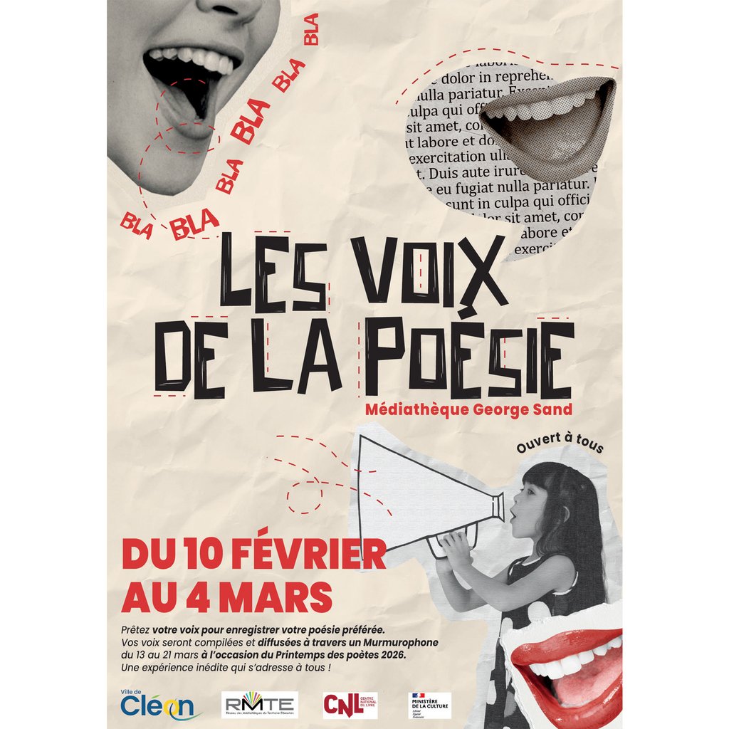 📖 Du 10 février au 4 mars, rendez-vous à la Médiathèque George Sand pour prêter votre voix afin de faire vivre la poésie !