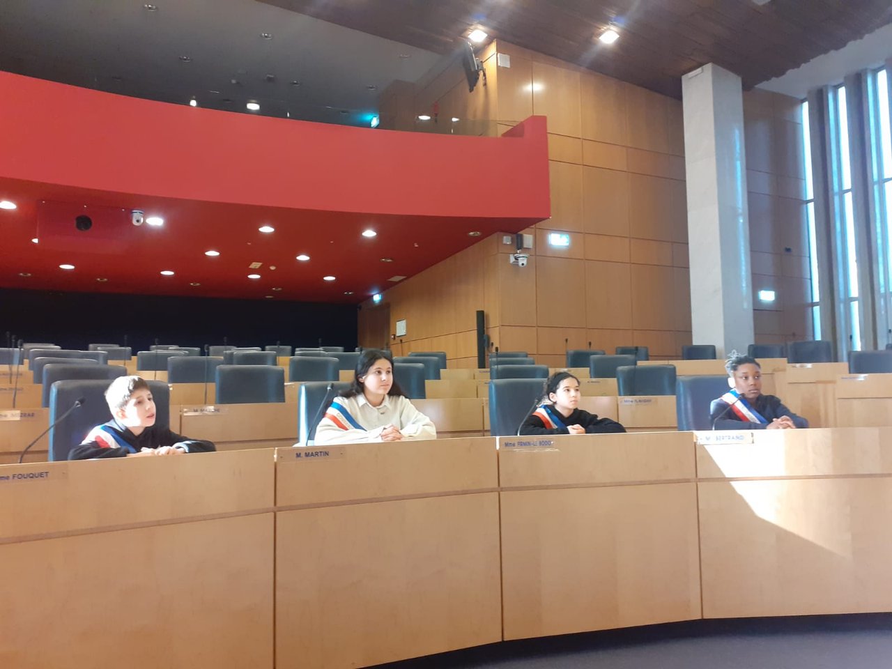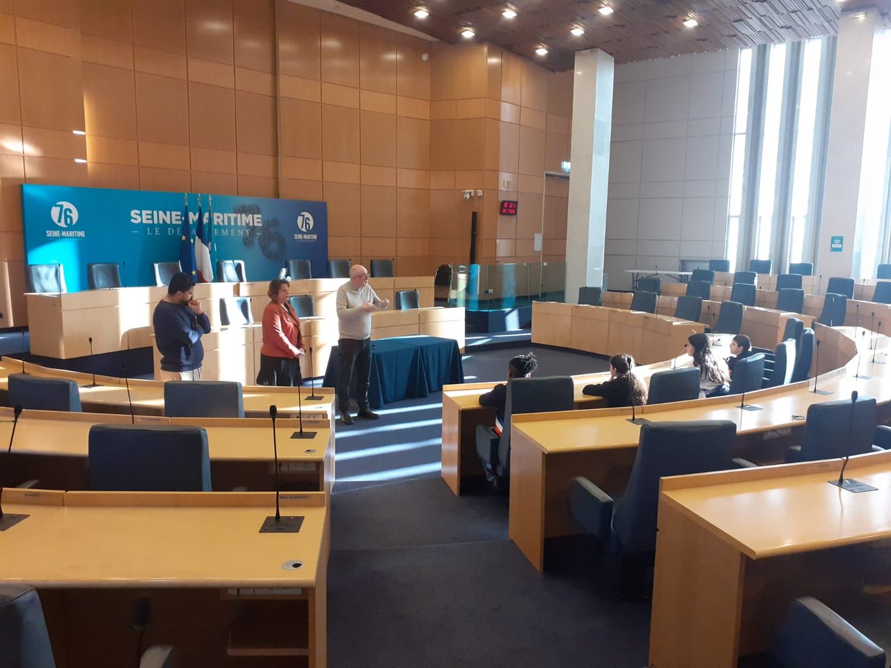 🗳️ Accueillis par Frédéric Marche, maire de Cléon et Vice-président du Département de Seine-Maritime en charge des ressources humaines, les jeunes ont pu prendre place dans l'hémicycle où se réunissent les conseillers départementaux.