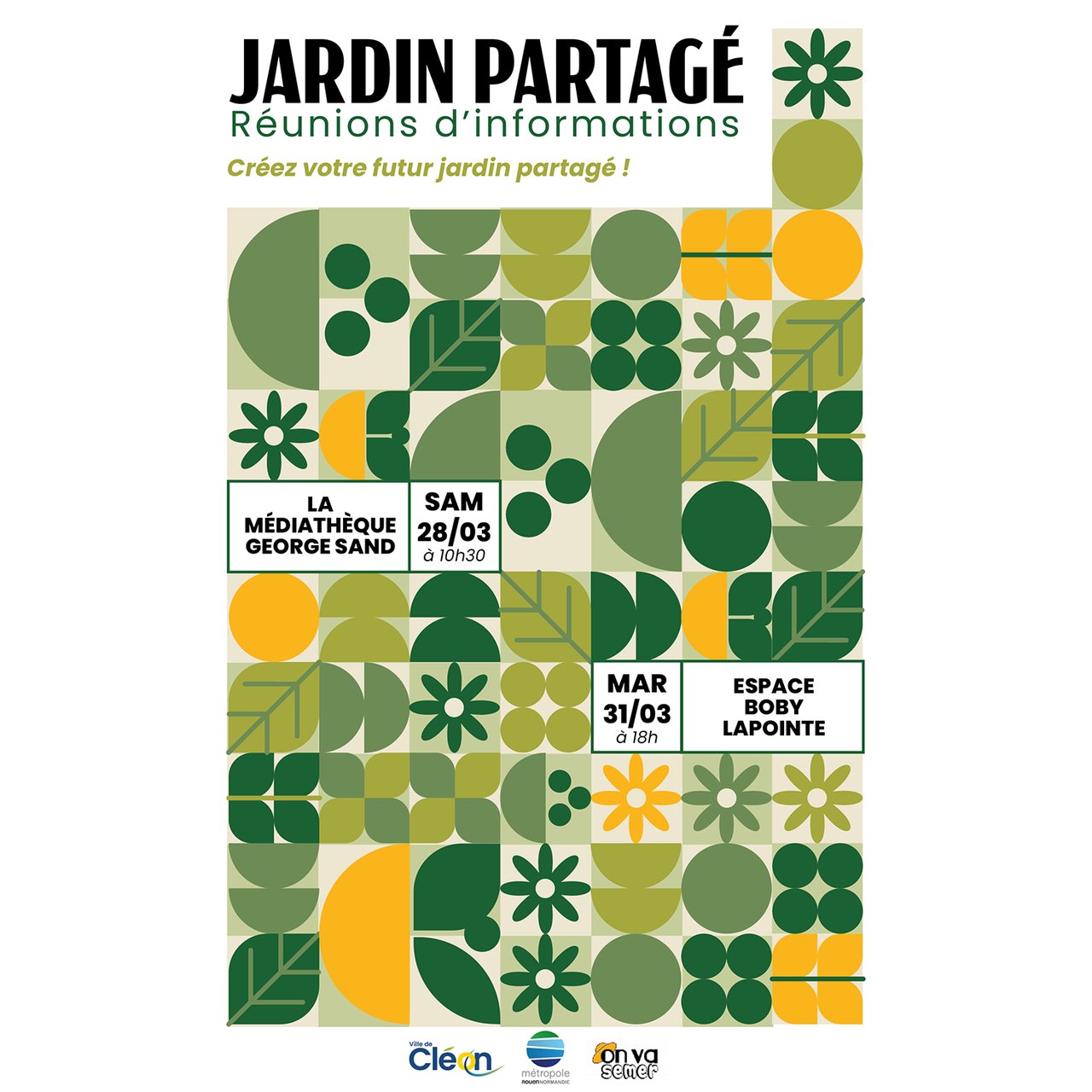 đ„ Samedi matin, Ă 10h30 Ă la MĂ©diathĂšque George Sand, participez Ă une rĂ©union dâinformation sur la crĂ©ation dâun futur jardin partagĂ© en plein coeur de ClĂ©on.
