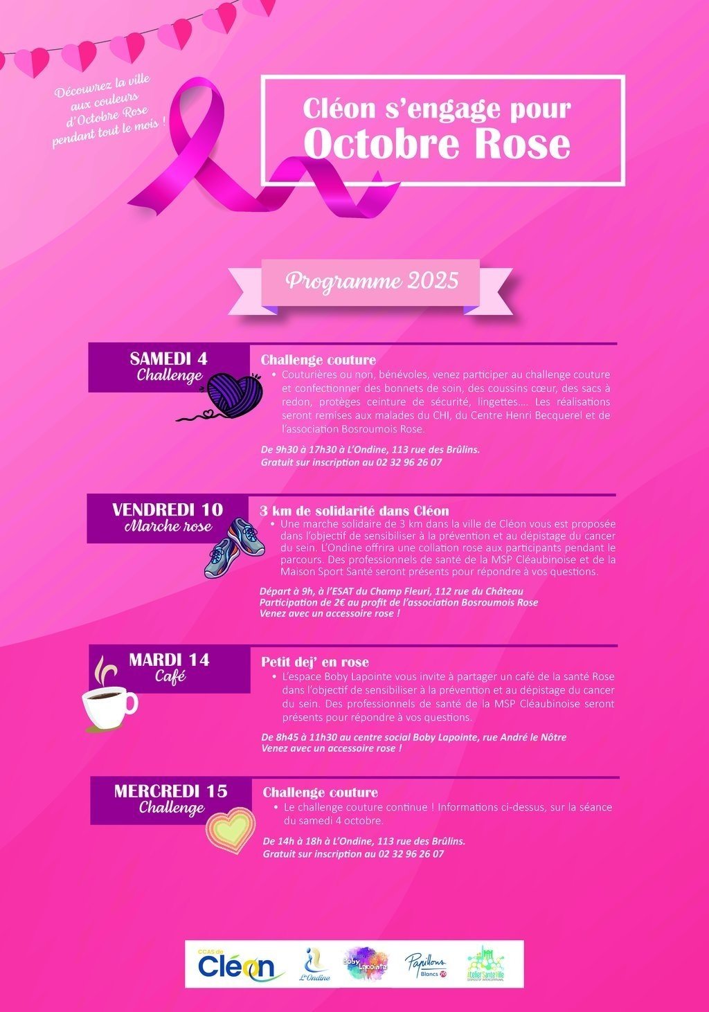 Le Centre Social Boby Lapointe propose le vendredi 17 octobre de 19h à 21h30 une soirée rose dans l’objectif de sensibiliser à la prévention et au dépistage du cancer du sein. Participez avec un accessoire rose.