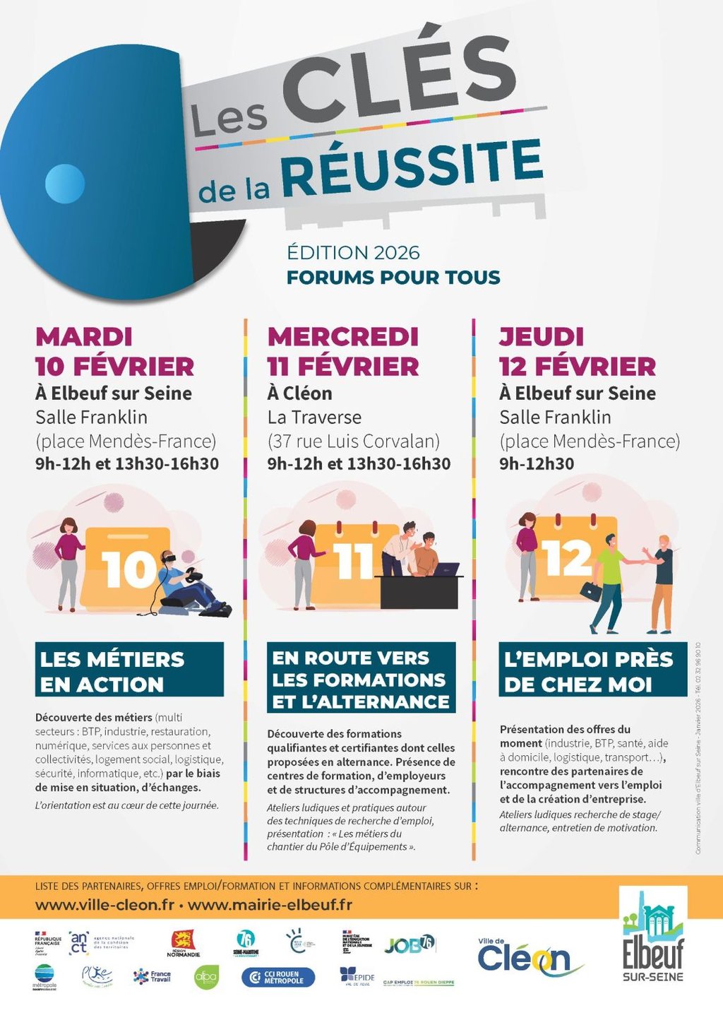 Les Clés de la Réussite sont l’un des évènements majeurs consacrés à l’emploi et à la formation. Cette année, les villes de Cléon et d’Elbeuf organisent la 10ᵉ édition de ce rendez-vous devenu incontournable pour l’orientation, l’insertion professionnelle et l’accompagnement des parcours de formation sur le territoire.