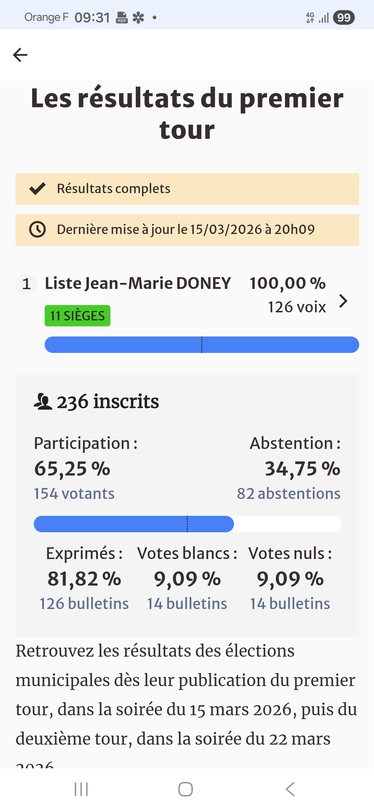 RÉSULTATS DES ÉLECTIONS MUNICIPALES DU 15 MARS