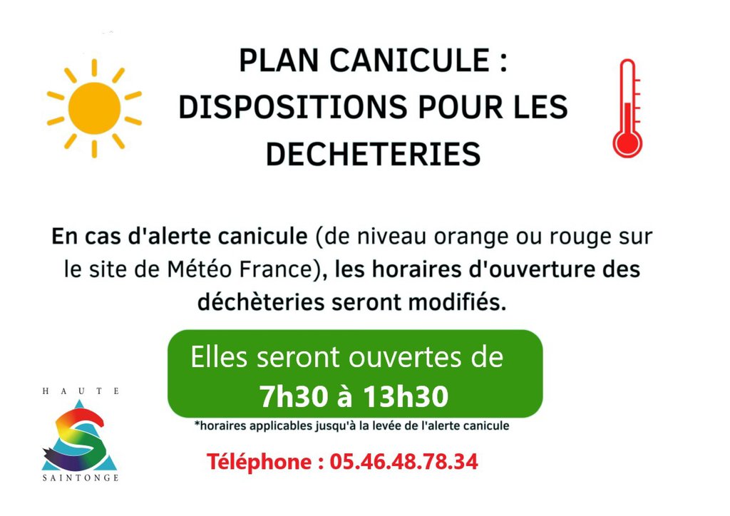 Veuillez noter les horaires adaptés pour les déchèteries pour lors des alertes canicules de niveau orange ou rouge.