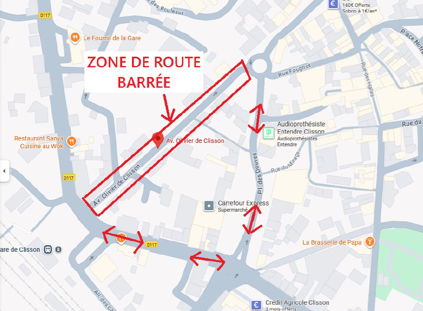 - Circulation des véhicules : L’avenue sera fermée. Une déviation sera mise en place par la place des Douves.