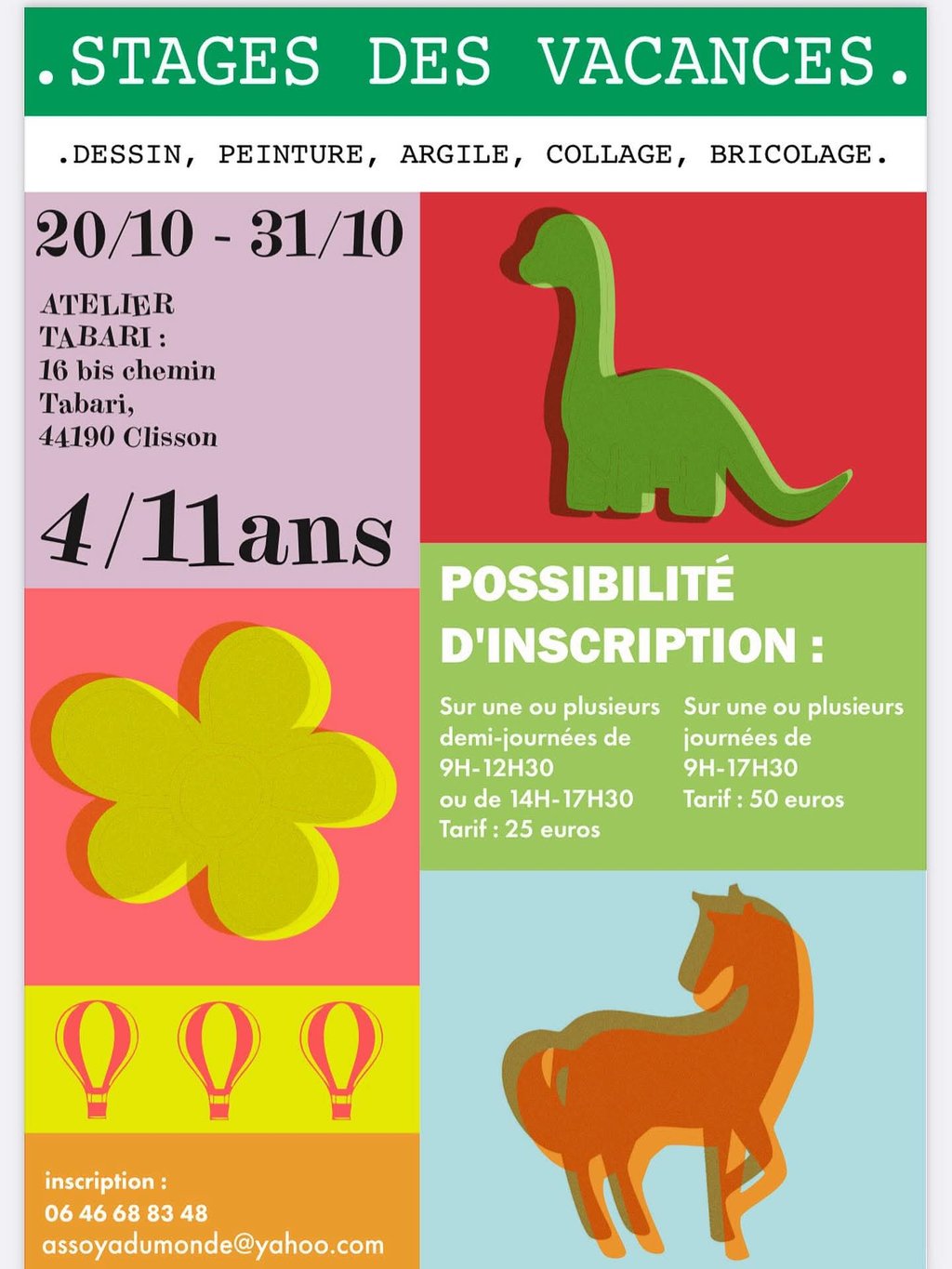 Ateliers de loisirs artistiques organisés par l'atelier Tabari (16bis chemin de Tabari, 44190 Clisson)