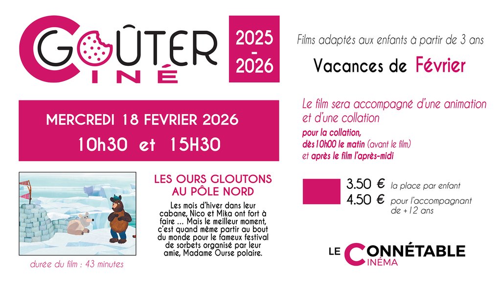 CINEMA LE CONNETABLE / CINE GOUTER : "Les ours gloutons au pôle Nord"
