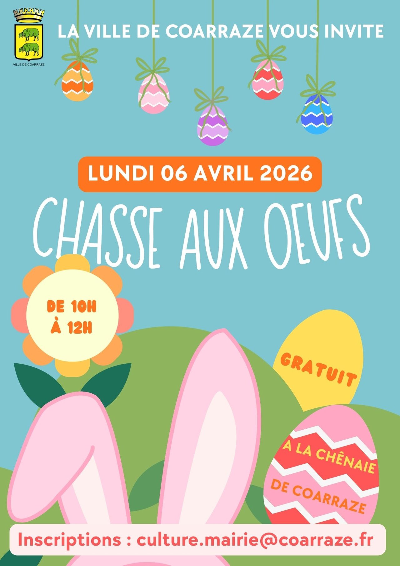 La chasse aux œufs de printemps aura lieu le lundi 6 avril 2026 à la Chênaie de Coarraze ma ville.
