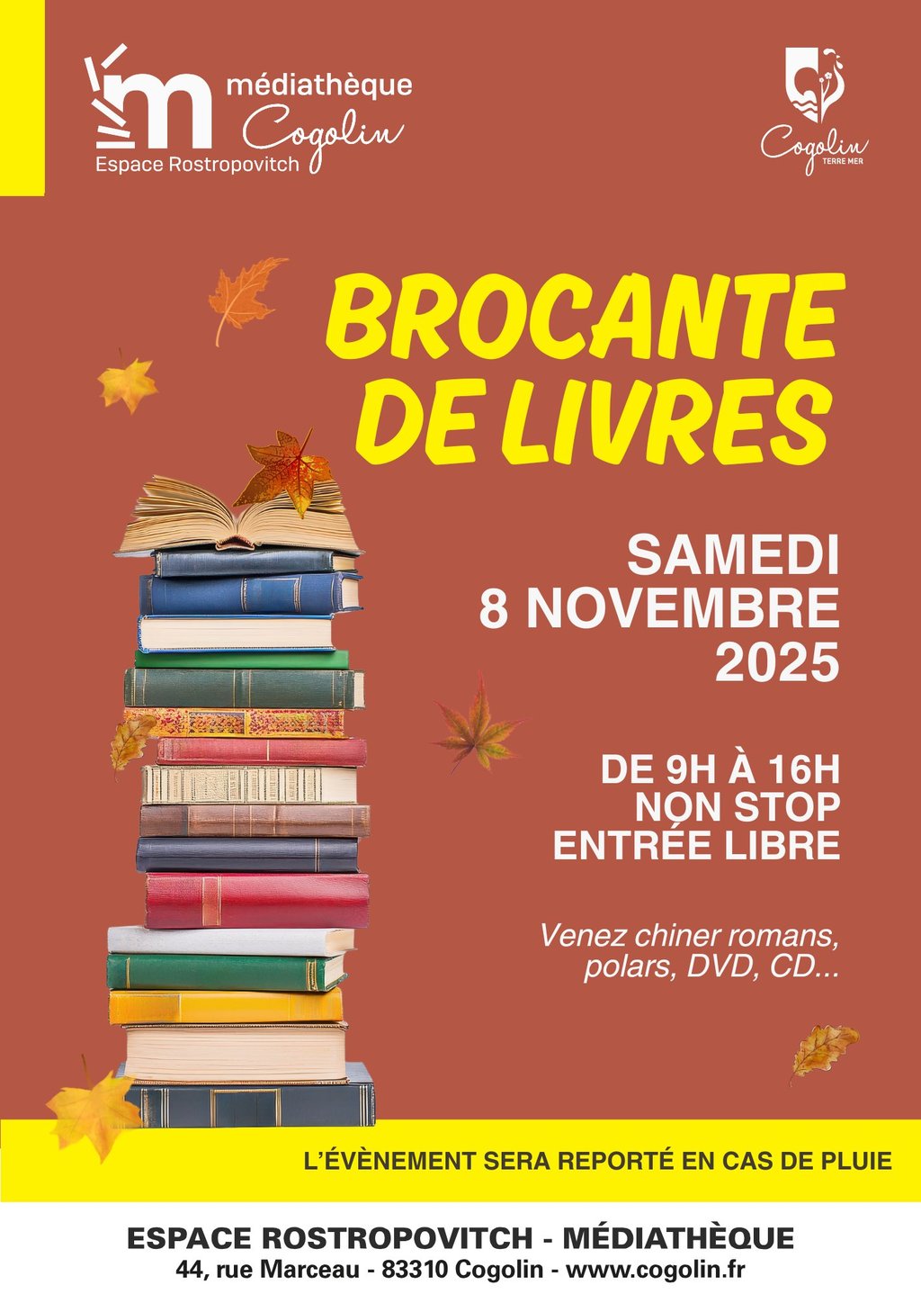 La médiathèque vous invite à sa grande brocante de livres ! Romans, polars, BD, DVD, CD… Venez chiner et dénicher vos prochaines lectures ou trouvailles culturelles à petit prix.