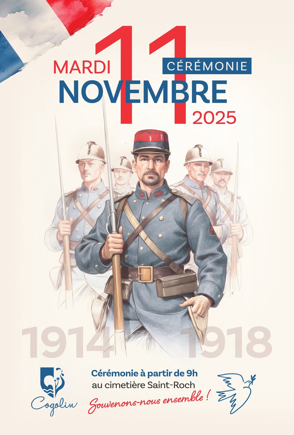 La Ville de Cogolin vous convie à la cérémonie commémorative de l’armistice du 11 novembre 1918. Un hommage sera rendu aux combattants de la Première Guerre mondiale au cimetière Saint-Roch, afin d’honorer leur mémoire et leur sacrifice.