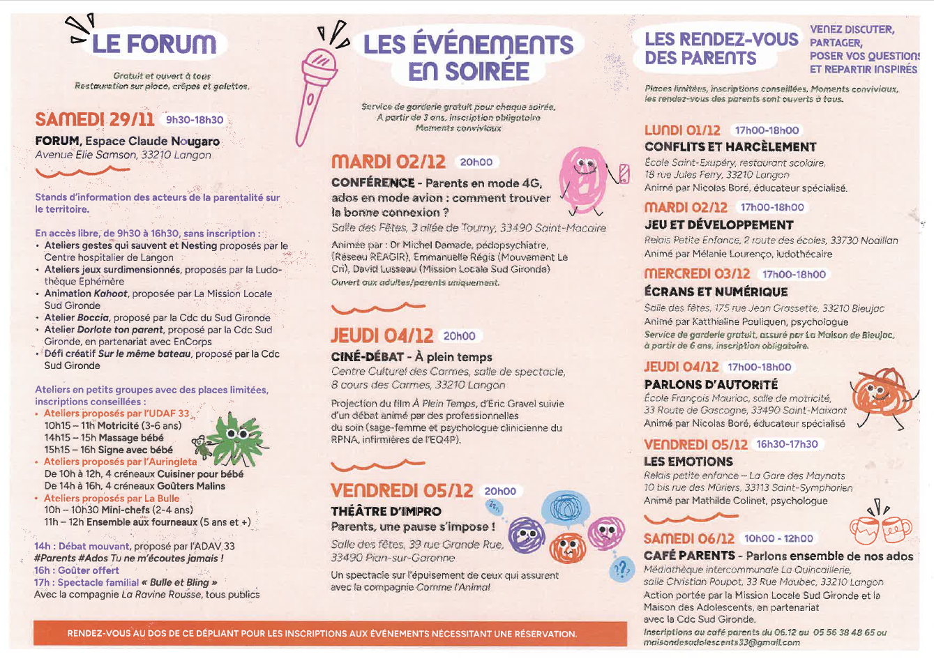La Communauté de Communes du Sud Gironde et ses partenaires invitent les familles à une semaine d'échanges, d'ateliers gratuits et de rencontres autour de la parentalité.