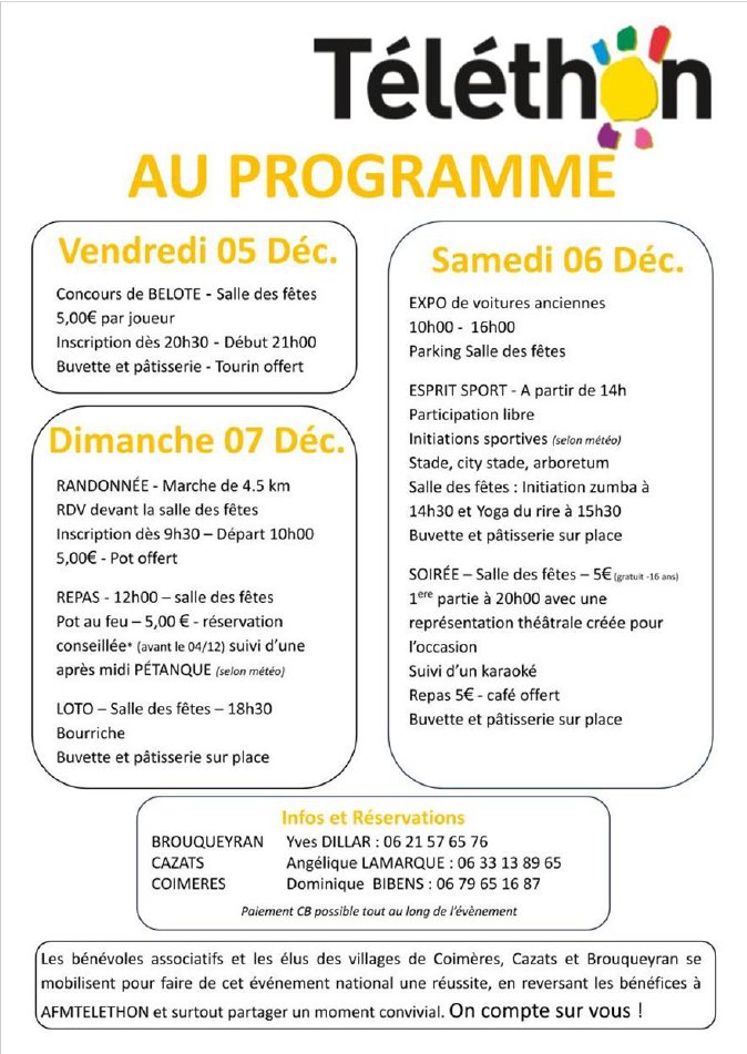 TÉLÉTHON - COIMÈRES - BROUQUEYRAN ET CAZATS
