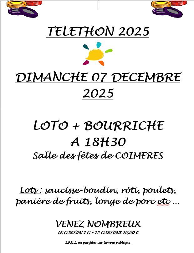 Ce dimanche 07 décembre aura lieu le LOTO du TÉLÉTHON
