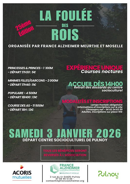 France Alzheimer 54 vous invite à participer à la 25e édition de la Foulée des rois.