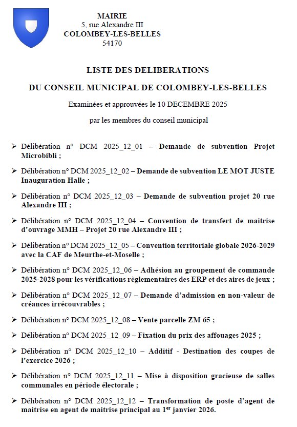 Sur le site internet de la commune https://www.colombeylesbelles.fr/deliberations-du-conseil-municipal.php
