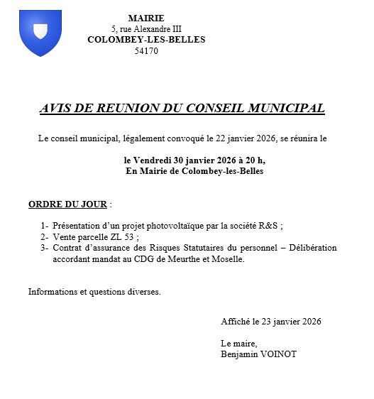 AVIS DE REUNION DU CONSEIL MUNICIPAL