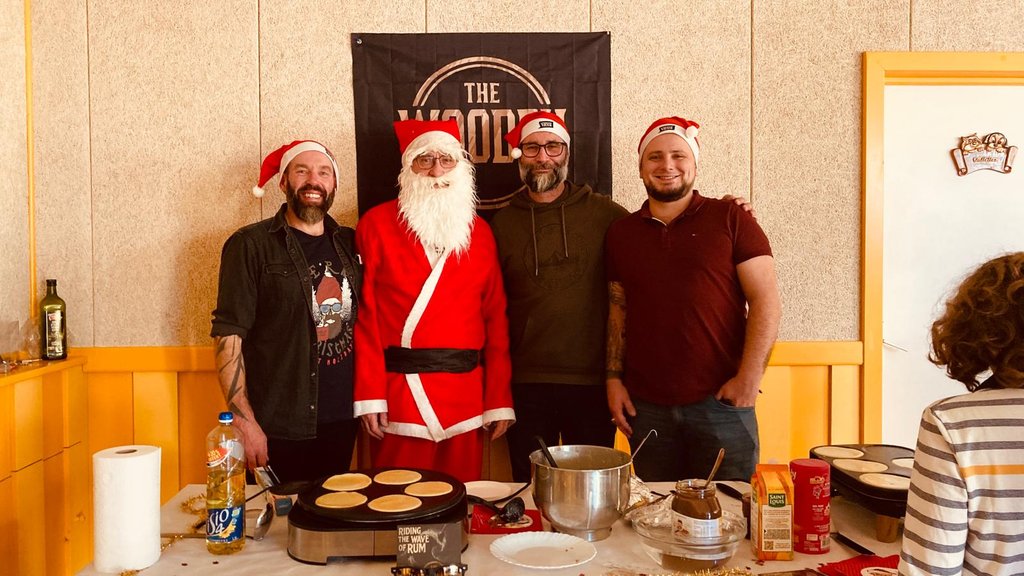 Ce samedi, le père Noël n'a pas oublié de passer à la salle communale. Un goûter avec des crêpes préparées par Antoine et Julien, accompagnées de friandises, papillotes et mandarines étaient offertes aux enfants.