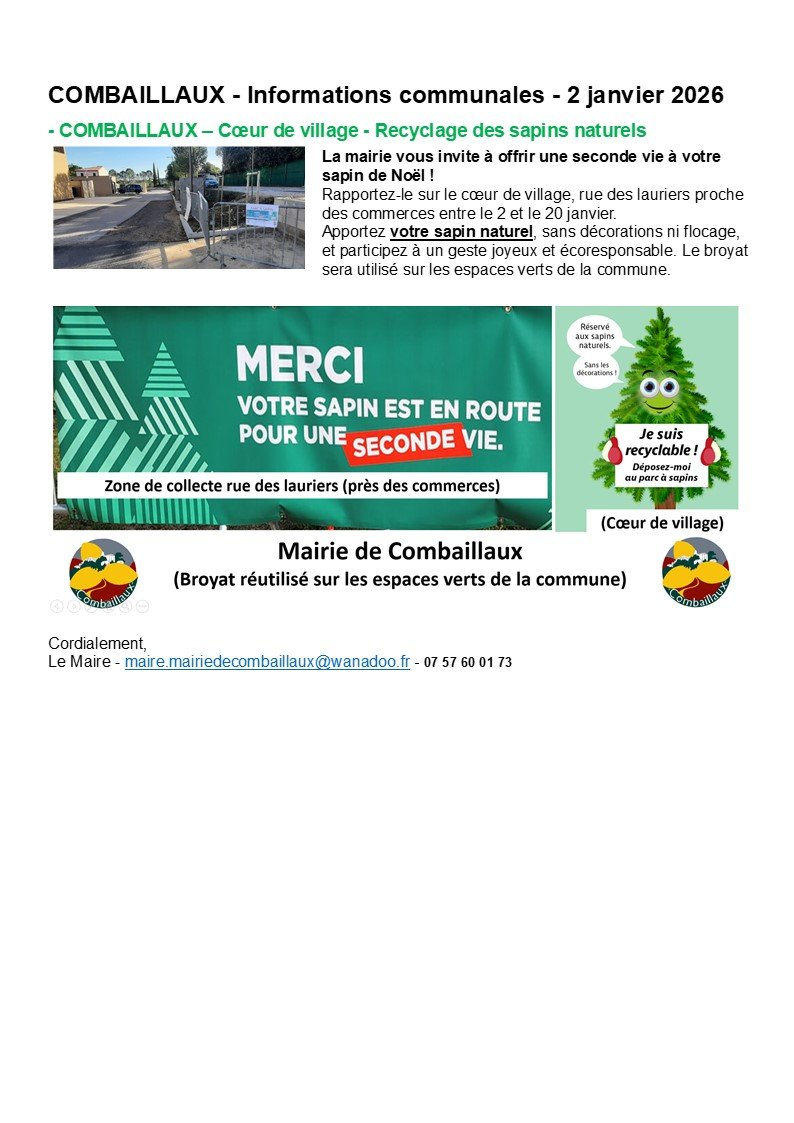 COMBAILLAUX – INFORMATIONS COMMUNALES – 2 JANVIER 2026