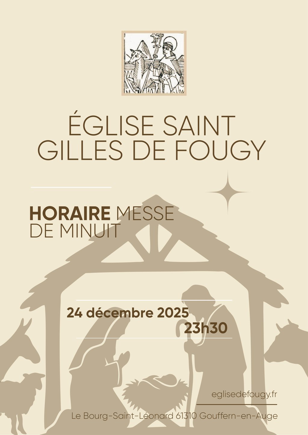 Cette année, l'église de Fougy organise une messe de minuit le 24 décembre 2025 à 23h30.