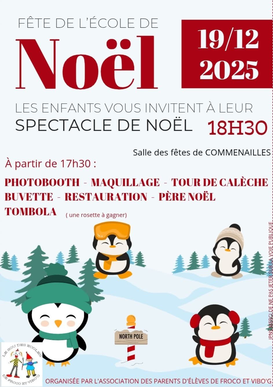 Venez profiter des animations de la fête des écoles ce vendredi 19 décembre dès 17 h 30 avec : photobooth, maquillage, tour de calèche, buvette, restauration, père Noël, tombola...