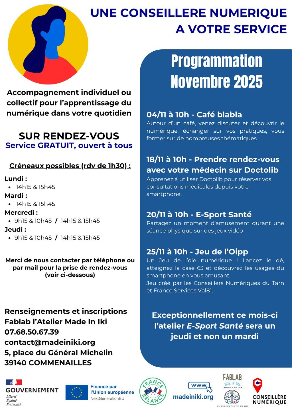 Programmation ateliers Conseillère Numérique novembre 2025