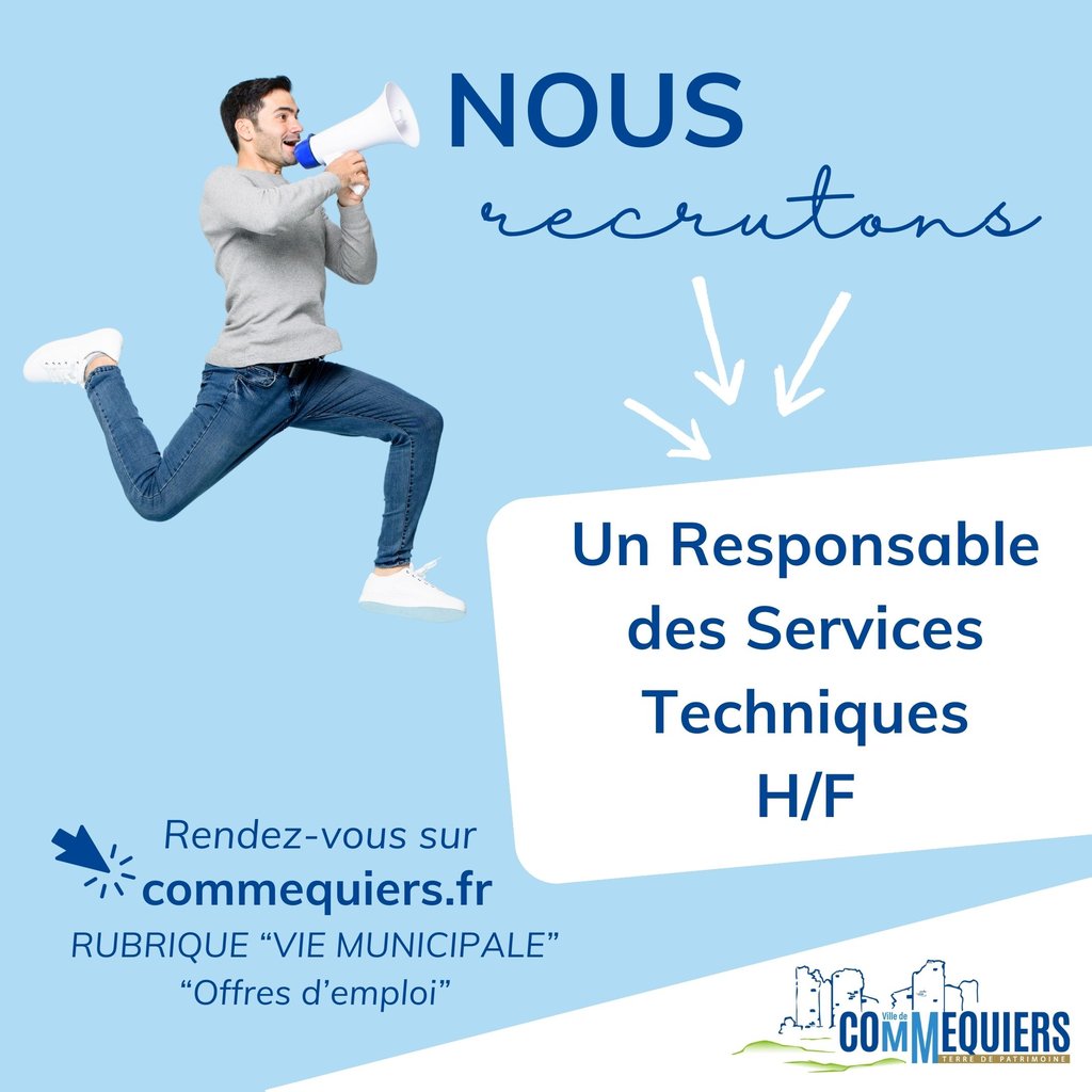 La Ville de Commequiers recrute un RESPONSABLE DES SERVICES TECHNIQUES (H/F) !