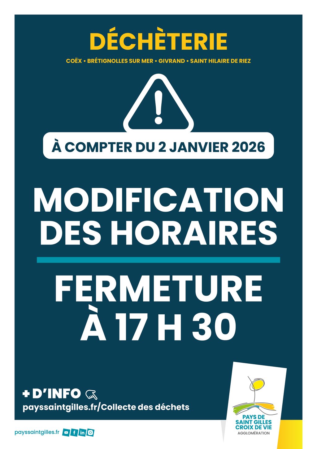 A partir du 2 janvier 2026, fermeture des déchèteries à 17h30