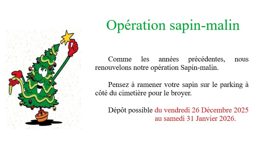 Pensez à ramener votre sapin sur le parking à cÎté du cimetiÚre pour le broyer.