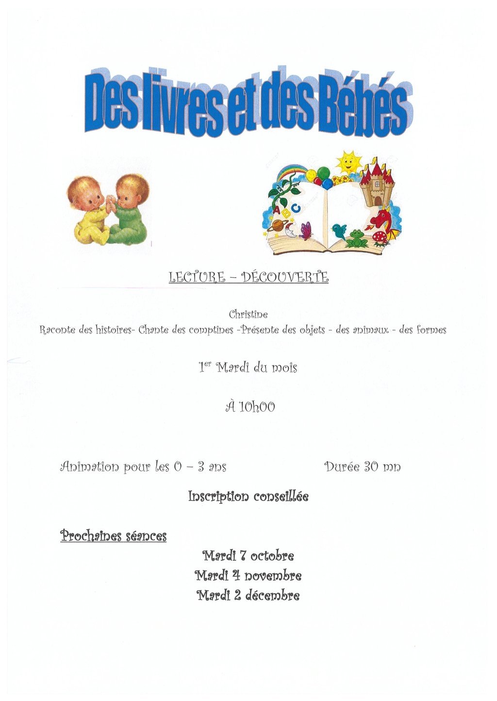 Horaires de la Bibliothèque et Lecture aux bébés