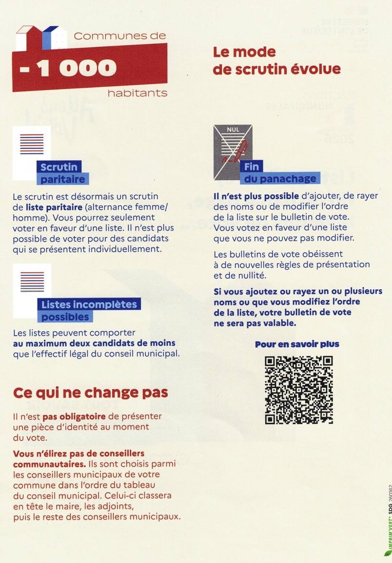 ELECTIONS MUNICIPALES 2026, LE MODE DE SCRUTIN ÉVOLUE