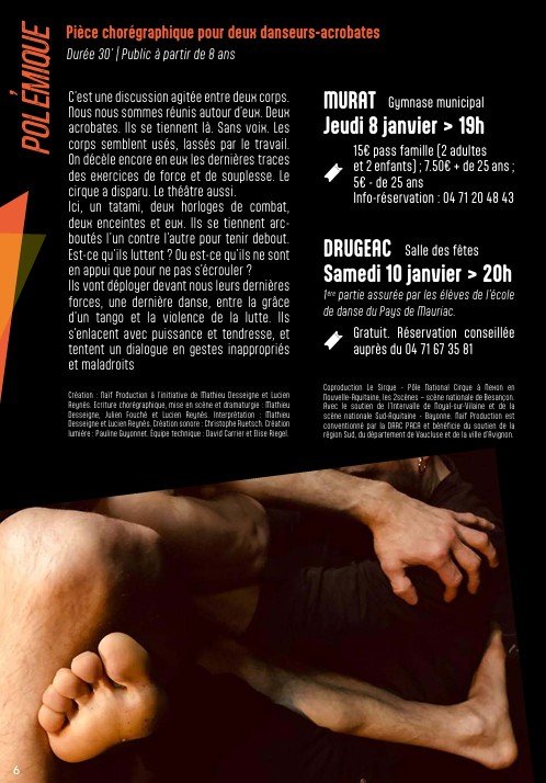 Dans le cadre du festival Jours de danse(s) organisé par Culture Cantal, profitez d'un spectacle de danse le 8 janvier prochain au gymnase de Murat.