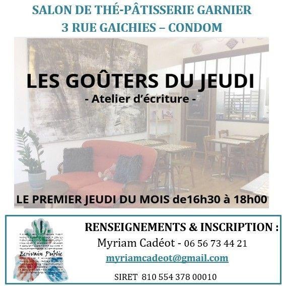 Écriture et gourmandise seront au rendez-vous, tous les jeudis de 16h30 à 18h00 au salon de thé Cyril Garnier.