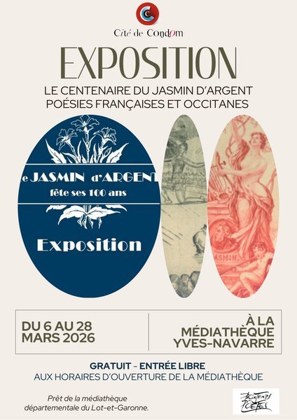 Du 6 au 28 mars, venez découvrir l'exposition « Le centenaire du Jasmin d’Argent - poésies françaises et occitanes » à la médiathèque de Condom !