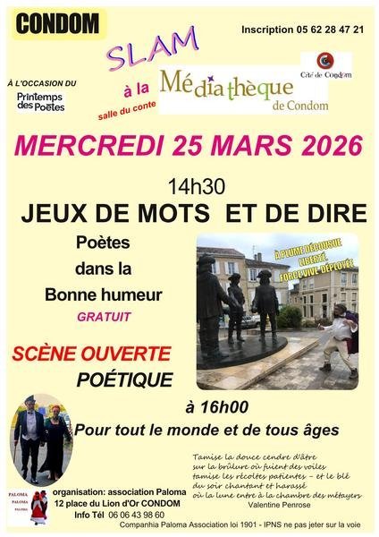 La médiathèque vous donne rendez-vous à 14h30 le mercredi 25 mars pour le 4 ème atelier « slam - jeux de mots et de dire » à la médiathèque.