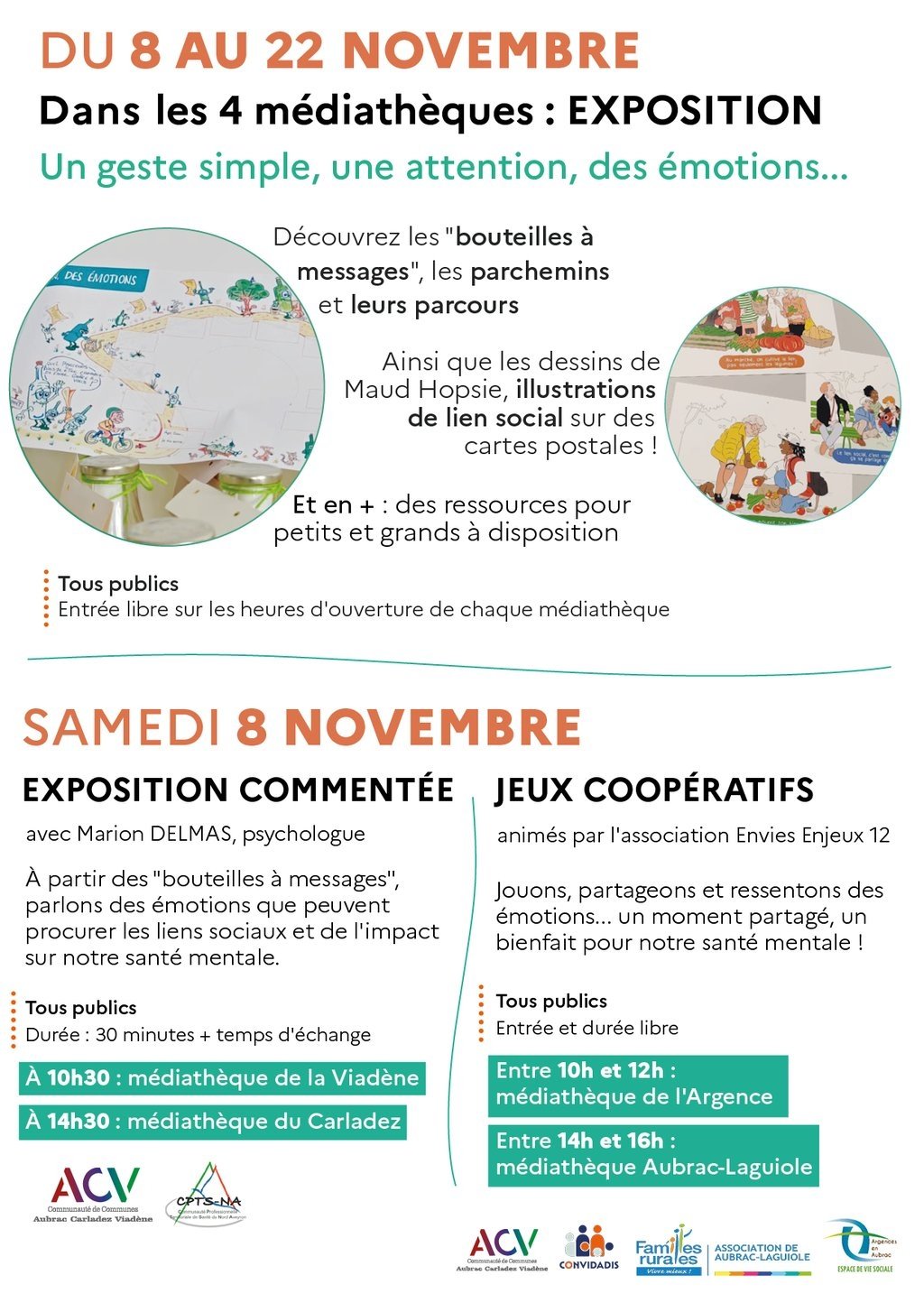 • Médiathèque Aubrac-Laguiole : entre 14h et 16h (entrée et durée libre)