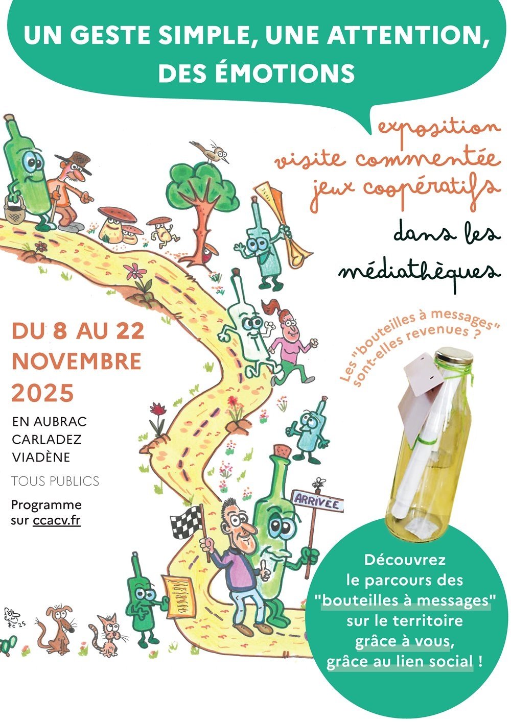 Les « bouteilles à messages » ayant parcouru le territoire sont revenues ! Rendez-vous dès demain dans toutes les médiathèques du territoire pour découvrir leurs parcours. Les bouteilles et leurs parchemins seront exposés simultanément dans les 4 médiathèques.