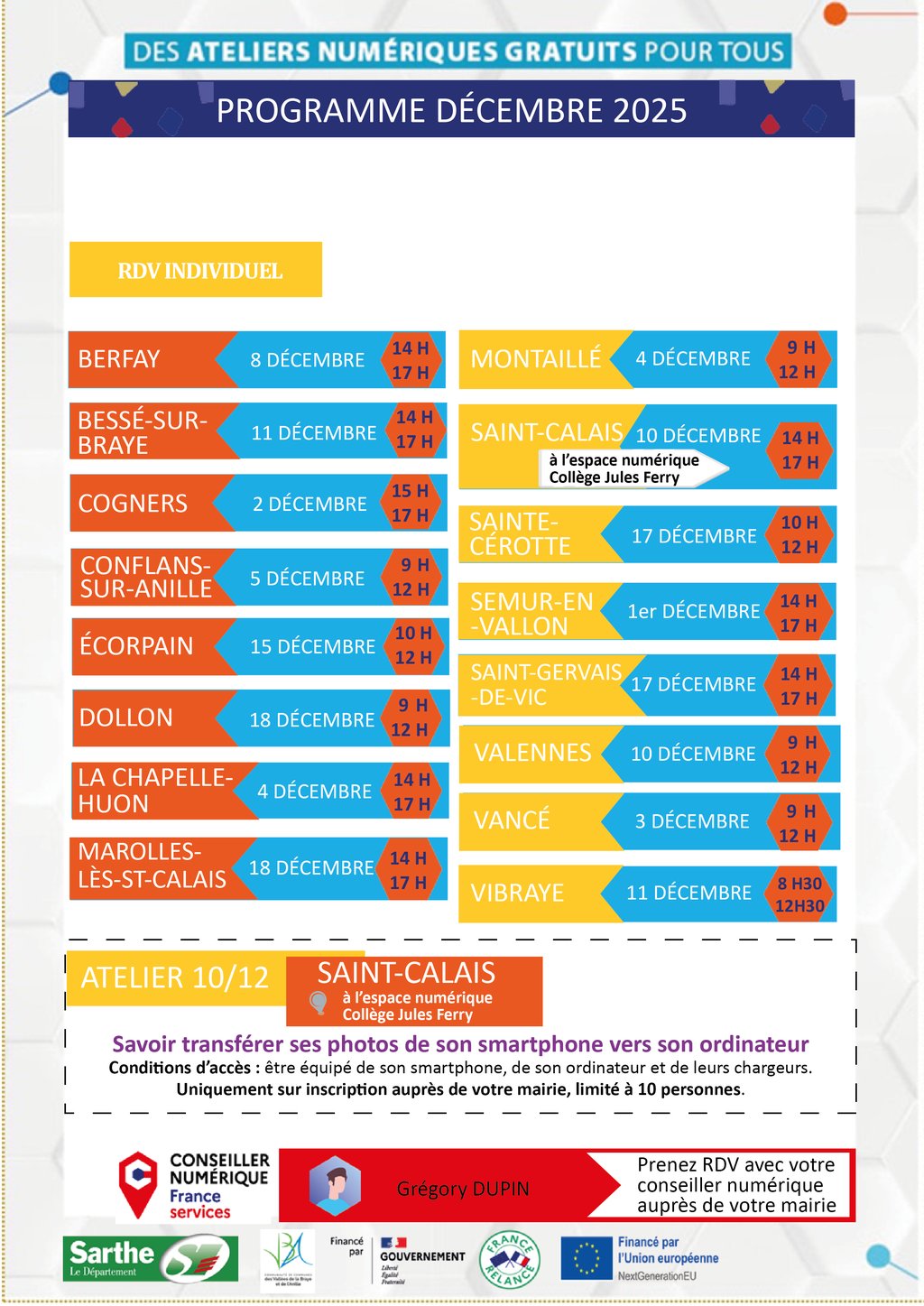Retrouvez toutes les dates du conseiller numérique dans vos communes pour le mois de décembre.