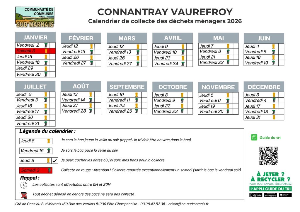 CALENDRIER DE COLLECTE DES DÉCHETS MÉNAGERS 2026