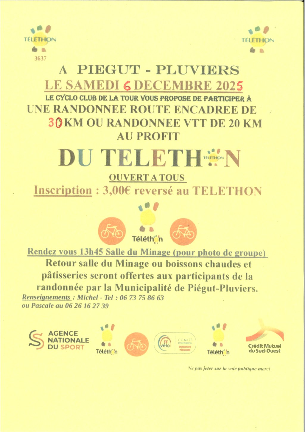 - 2 RANDONNEES PEDESTRES OUVERTES à TOUS : 5€ entièrement reversés au téléthon