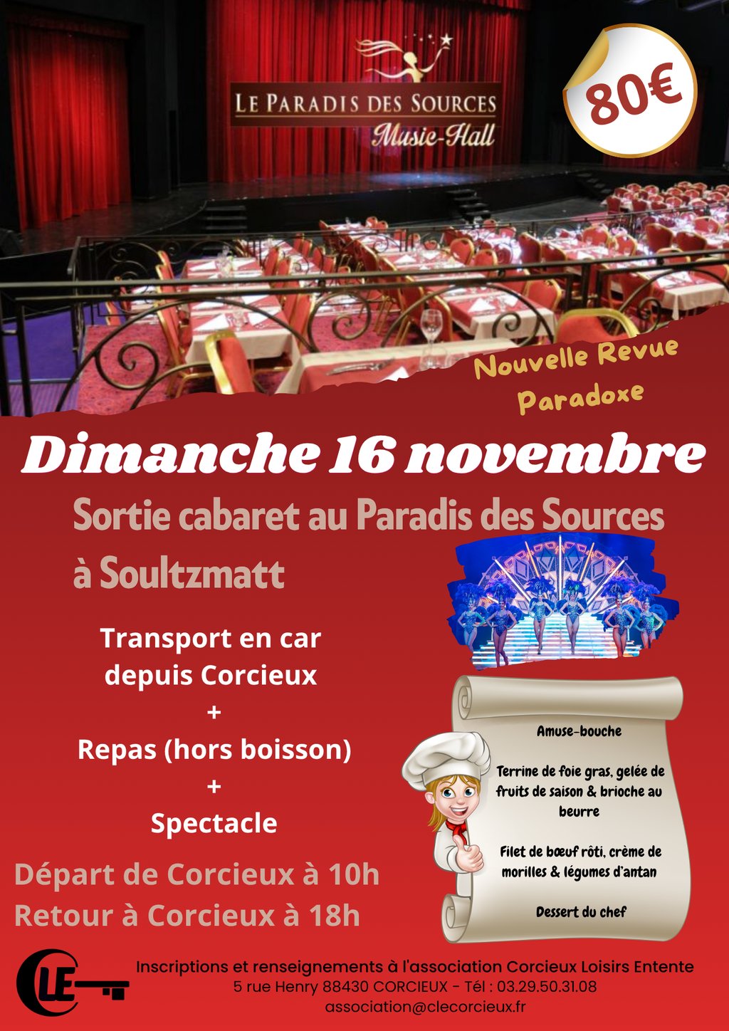 Tarif : 80 € par personne (transport + repas + spectacle)
