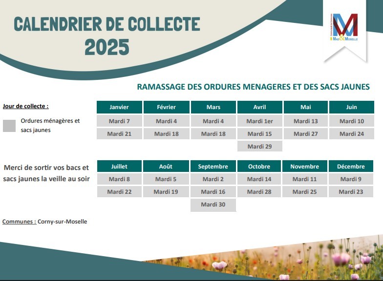Toutes demandes d'équipements, de retraits de bacs ou tous changements dans les foyers (départ, arrivée, composition) sont à signaler et seront traités par le service déchet de la CCM&M. Les bacs, couvercles fermés, et les sacs jaunes doivent être sortis la veille au soir sur un emplacement visible et ne gênant pas la circulation des piétons.