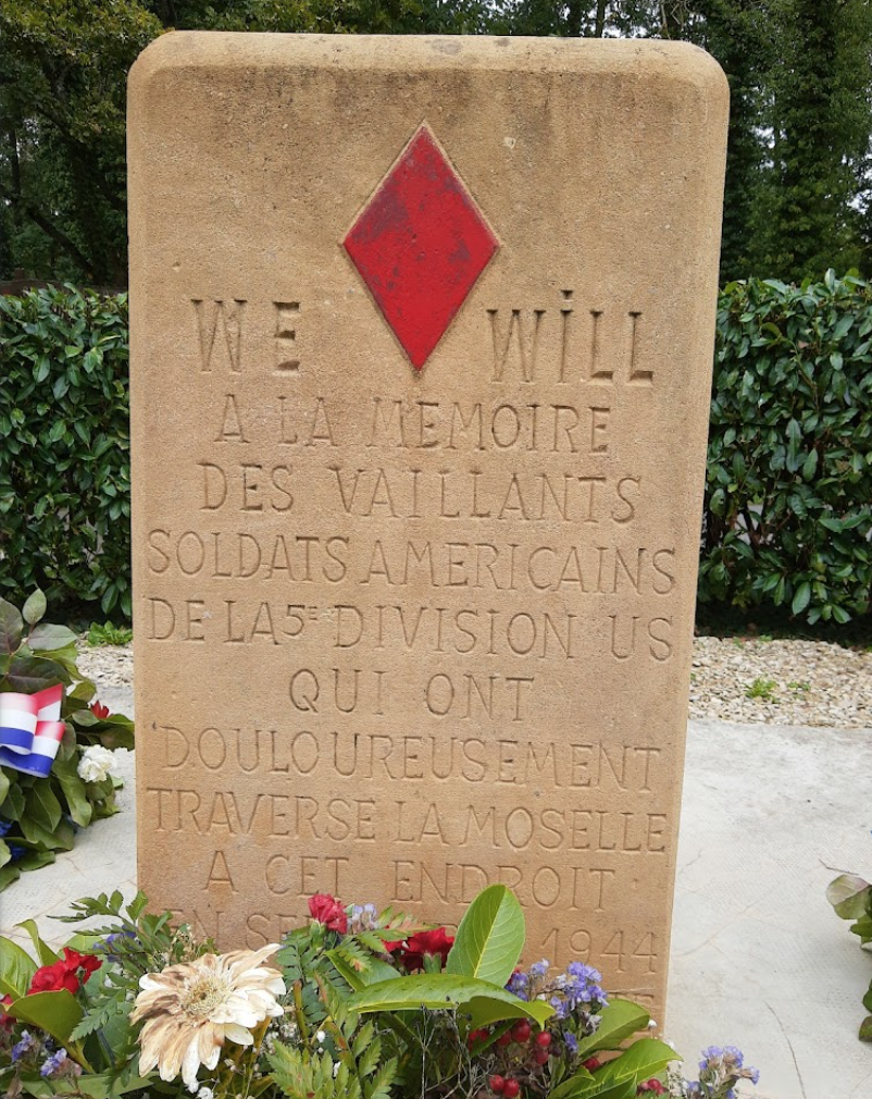 La bataille du bois du Fer à Cheval à Corny sur Moselle est sans doute la plus douloureuse bataille qu'ont eu à subir les soldats du 11e régiment de la 5e division d'infanterie américaine pendant la Seconde Guerre mondiale. Après s'être vaillamment battue en Normandie, après avoir libéré Angers, Chartres, Fontainebleau, Reims et Verdun, la 5e division US a pour mission de libérer Metz. Le 7 septembre 1944, venant de Gorze, les GIs arrivent sur les hauteurs de Dornot avec mission de traverser la Moselle le 8 et de prendre le fort St Blaise situé face à Dornot sur la rive est.