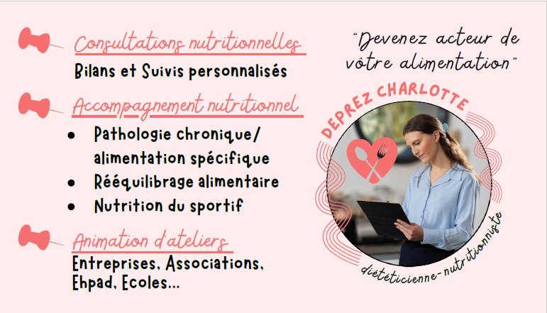 Diplômée du BTS Diététique, avec une formation complémentaire en nutrition du sportif ainsi qu’en Éducation Thérapeutique du Patient (ETP).