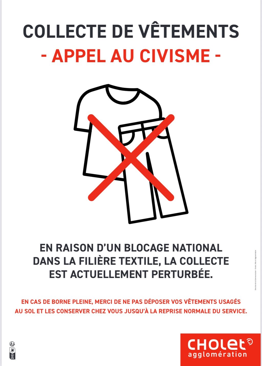 PERTURBATION DU SERVICE DE COLLECTE DES TEXTILES