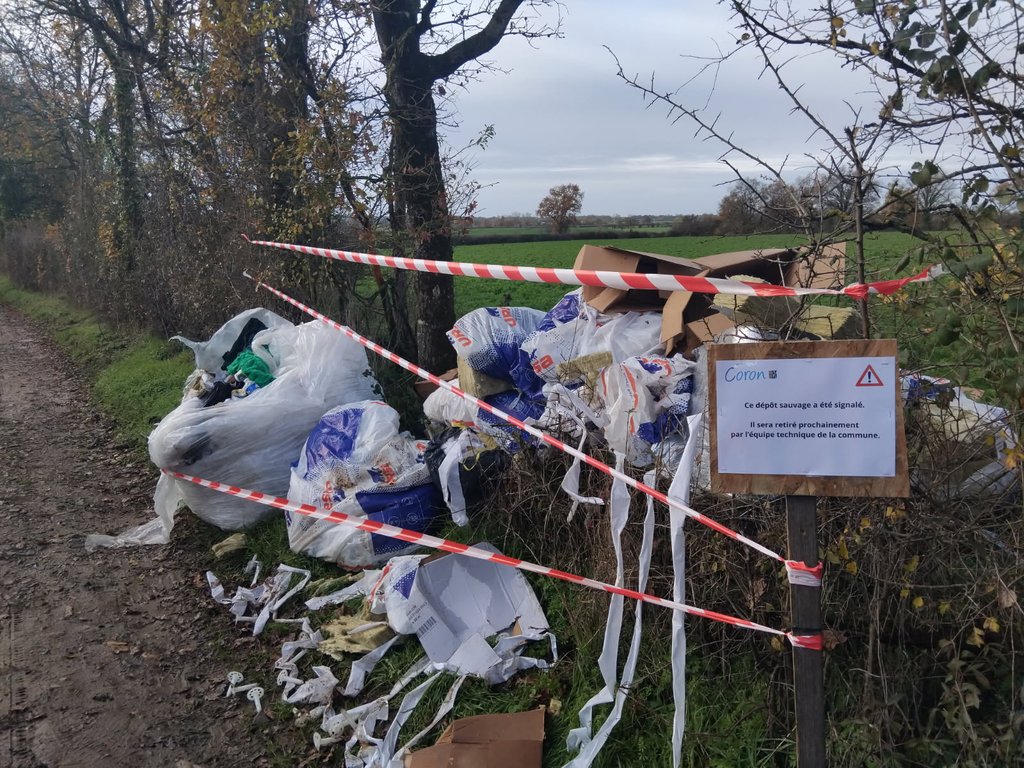 Un dépôt sauvage a récemment été découvert sur notre commune, chemin du Moulin Neuf. Les gendarmes ont été immédiatement alertés et se sont rendus sur place pour constater les faits. Les services municipaux interviendront prochainement pour enlever les déchets et remettre le site en état.