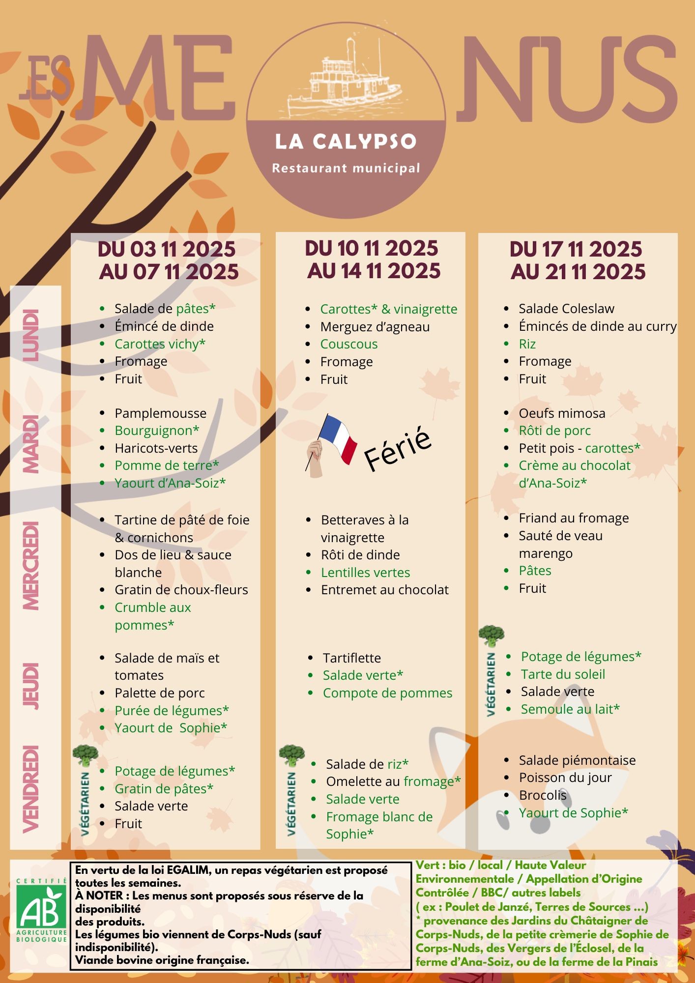 Le restaurant municipal "La Calypso" est situé au 24 rue François QUELAIN.